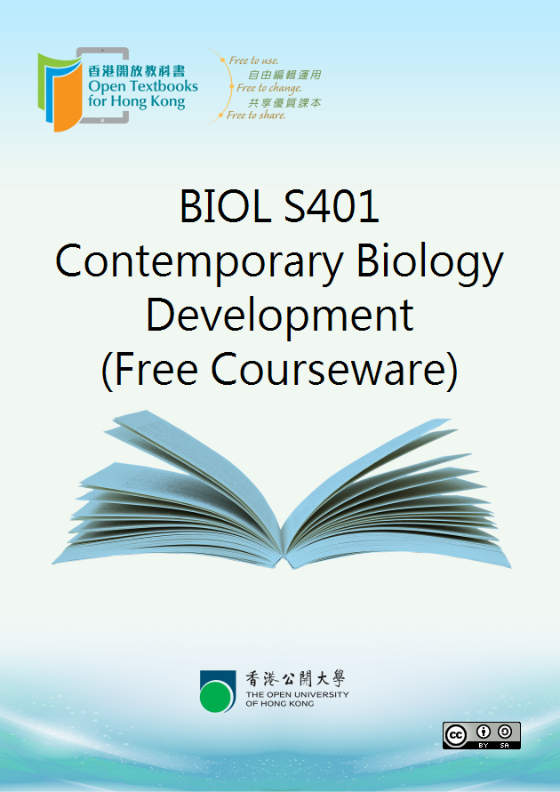 "BIOL S401 Contemporary Biology Development" is one of the free open textbooks for Tertiary level. Feel free to use, adapt and modify the content to your own needs, and share the improved content with others because the book is offered under Creative Commons (CC) license. It allows users to repurpose the materials under the condition that original authors’ contribution is acknowledged.