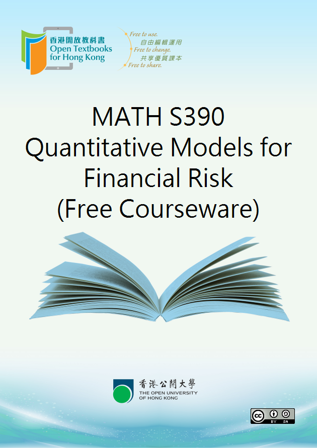 "MATH S390 Quantitative Models for Financial Risk" is one of the free open textbooks for Tertiary level. Feel free to use, adapt and modify the content to your own needs, and share the improved content with others because the book is offered under Creative Commons (CC) license. It allows users to repurpose the materials under the condition that original authors’ contribution is acknowledged.