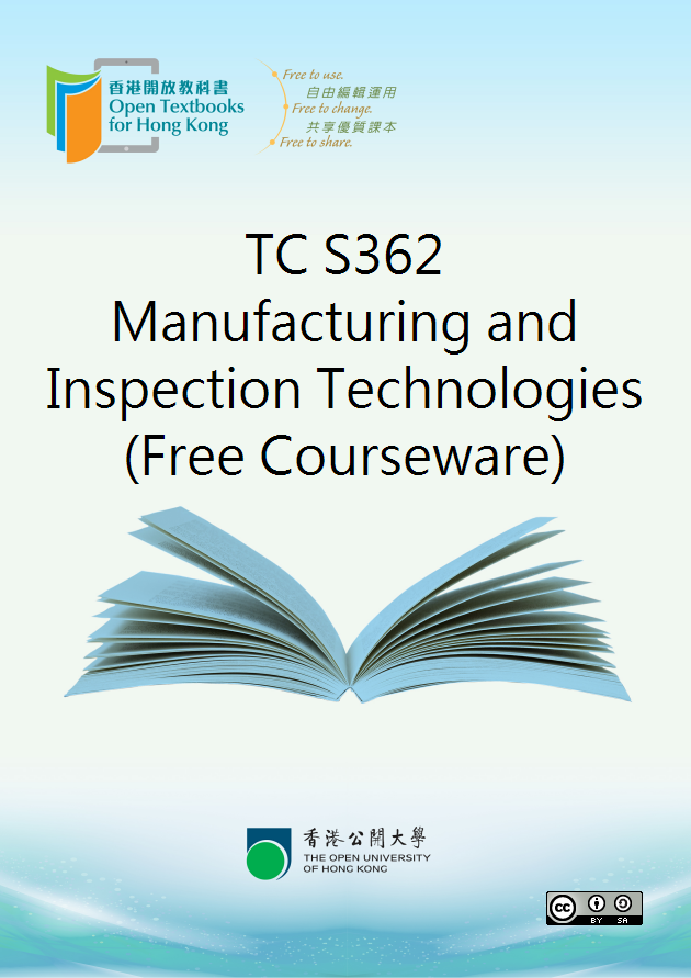 "TC S362 Manufacturing and Inspection Technologies" is one of the free open textbooks for Tertiary level. Feel free to use, adapt and modify the content to your own needs, and share the improved content with others because the book is offered under Creative Commons (CC) license. It allows users to repurpose the materials under the condition that original authors’ contribution is acknowledged.